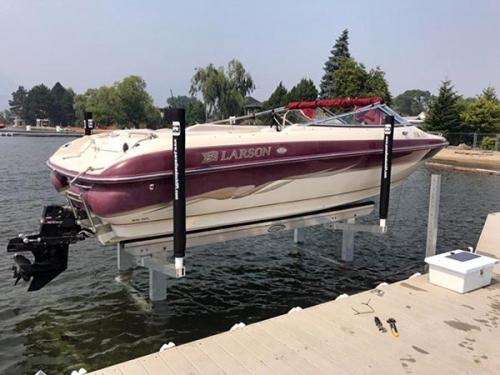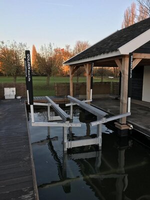 Merkmale: Gehärtete Edelstahl-Achsen mit Nylatron-Hülsen, kabellose Fernbedienung mit großer Reichweite und 2 Sendern, Konstruktion aus Aluminium und Edelstahl in Marinequalität, Aluminium-Kufen mit verstellbaren Einsätzen mit Gummikappen, Hydraulikzylinder mit Edelstahlschäften.